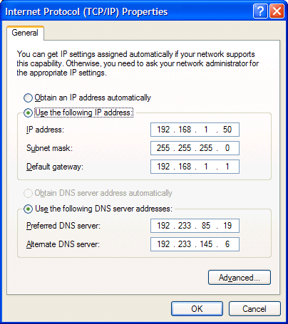 This opens the Internet Protocol (TCP/IP) Properties window.