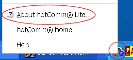 - Right-click the hotComm headphone icon in the lower right corner of your Window icon/system tray and select About hotComm.