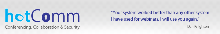 For over a decade, smart businesses have been making the switch from loaded-down, lethargic, and system "resource-hogging" browser-based web conferencing tools to hotComm. When the bottom-line, timing and reliability is everything, your company can't afford even one more minute of "down time". Your firms productivity and profits depend on it!